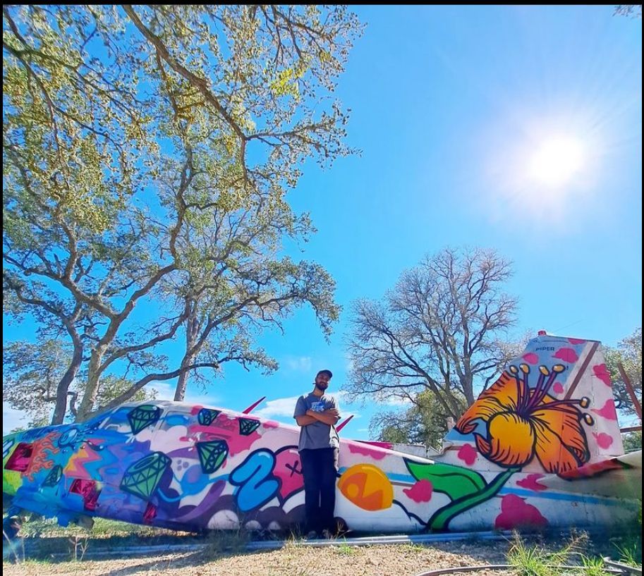 So, I've been making art my whole life really. I mean, I was like 3 or 4 [years old], sitting with my grandpa and he'd like bust out this roll of tracing paper and would just describe these characters to me… like whether it be a gingerbread man…animals and all kinds of stuff. So, I was always doodling really young. Coloring books were my best friend…and then I eventually was making comics in middle school. I was always just drawing pictures… Then, when I discovered painting and street art, that's when everything kind of changed. That’s when I knew I like art. I was like “I want to draw.” I didn't know what I wanted to do, but after that, there was no going back. I want to make art, I want to paint walls, I want to paint on canvas, and I wanna make cool stickers… and it just was the whole culture sort of ate me up. I don't know. It's just always been there, and it's kind of all I've known.
